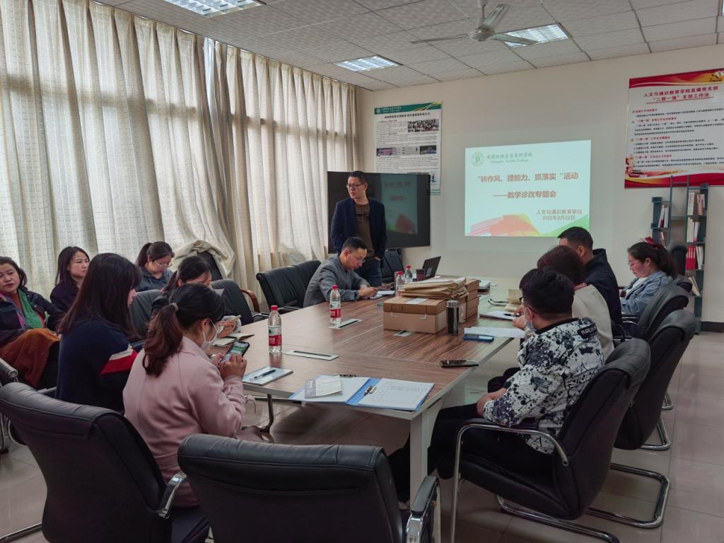 3月22日下午,按照“转作风、提能力、抓落实”的工作要求,k1体育组织全体教职工在D508开展全面自查工作暨教学诊改专题会,会议由公司经理陈骑兵主持。