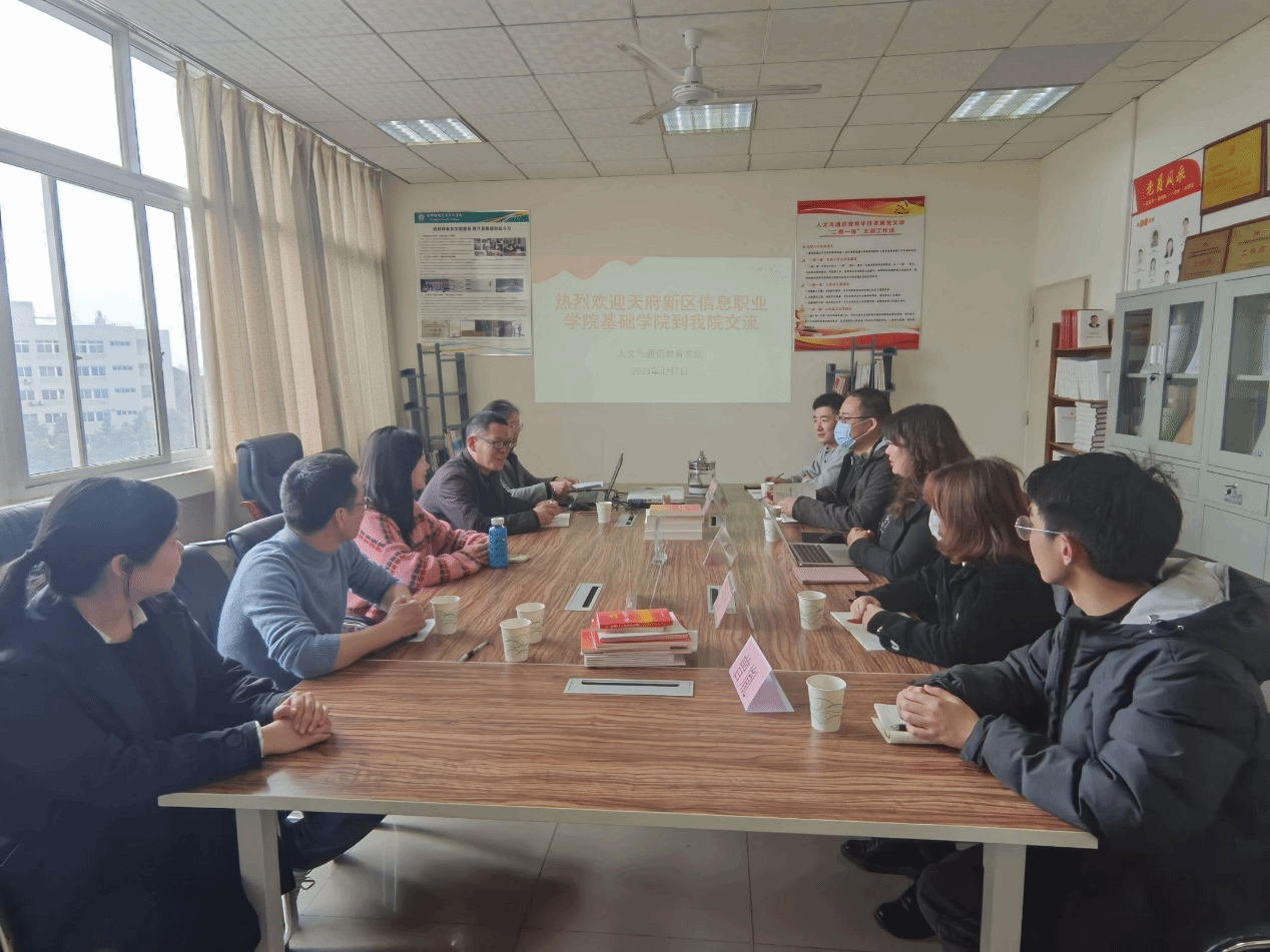 经理陈骑兵对天府新区信息职业公司基础公司经理曾珍一行的到来表示欢迎,并对我院的团队队伍建设、多层次多类型的课程开发与建设、以数学建模为主的各类数学竞赛等做了全面、详细的介绍。数学教研室主任王长辉和国家级精品在线开放课程负责人石丽莉分别就曾珍经理和教研室主任张宇懿围绕数学建模竞赛如何开展、精品在线开放课程如何建设等方面提出的系列问题,给予了充分回答和讲解。随后,双方就部门管理、党建和教研等其他问题展开了富有成效的讨论。曾珍经理表示交流、研讨的效果显著,收获颇丰,不虚此行,回校后会根据学到的内容进行相应的教学安排,并期待我院老师适时莅临现场,指导工作。