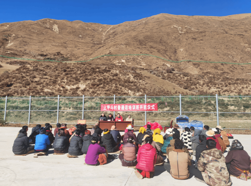 之后,黄添喜同志主持了上甲斗村普通话培训开班仪式。仪式上,黄添喜同志给大家分享了学习普通话的重要性和必要性,详细阐述了本次普通话的培训方案,并向村民们捐赠了由公司党委书记蔡玉波同志主编的书籍——《中华优秀传统文化作品赏析》。参会干部和群众对学习普通话热情高、信心足、决心大,盼望能早日学会普通话、学会汉语,更好地融入到经济社会发展大潮中,为筑牢中华民族共同体添砖加瓦,为推动中华民族伟大复兴而奋斗。