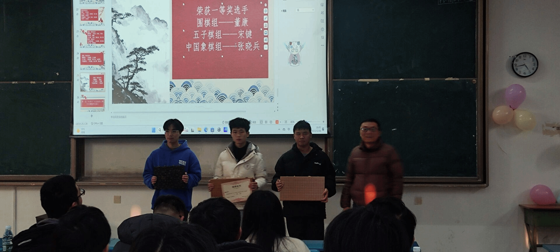 览斯戏以广思,仪群方之妙理。在开幕式上,短暂地分享完本届棋类大赛的精彩片段之后,主持人为大家介绍在近百人的比赛之中,脱颖而出的本届总决赛选手。他们分别是:围棋组现纺221董康、食品222郑长星;中国象棋组服普235张晓兵、软件233牛俊凯。