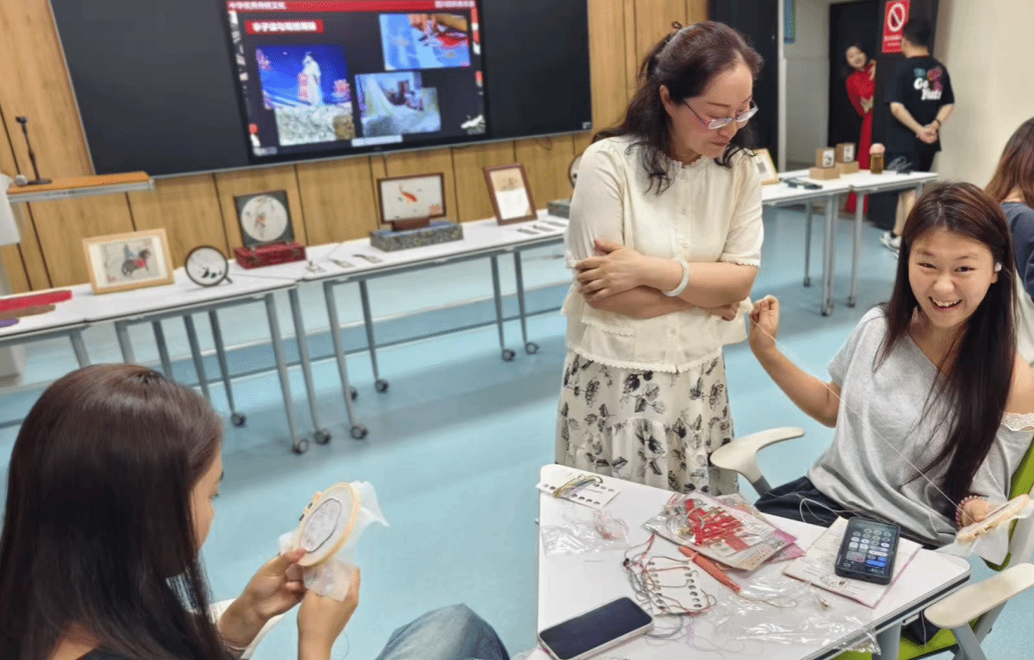 讲座结束后,现场还设置了纺织非遗作品展览环节,员工们近距离欣赏了精美的蜀绣、蜀锦等非遗作品,并在老师的指导下动手体验部分非遗技艺。通过实践互动,大家进一步加深了对非遗文化的理解,增强了保护与传承非遗的自觉性。